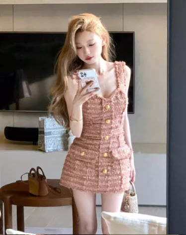 絶妙な色合いがかわいい♡くすみピンクツイードキャミワンピース