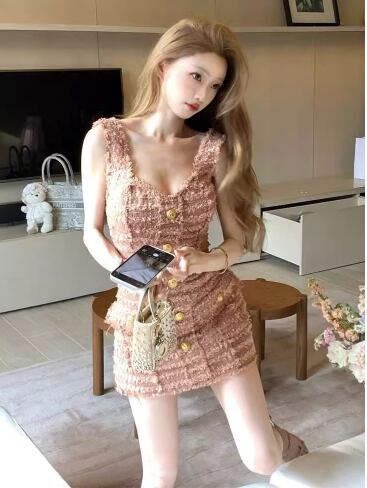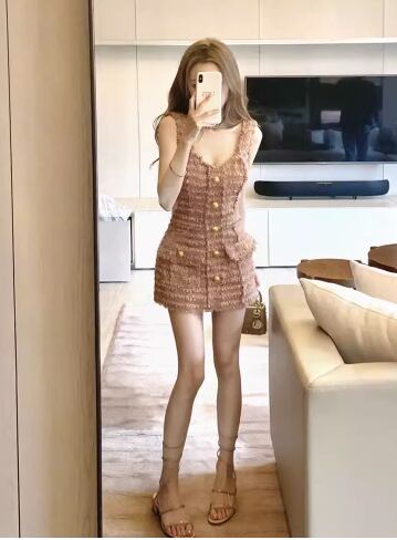 くすみピンクツイードキャミワンピースは、デイリーからパーティーシーンまで様々な場面で活躍してくれます。一枚でコーディネートが完成するので、おしゃれ初心者の方にもおすすめです。上品な印象を与えながらも、可愛らしさも忘れない、大人可愛いワンピースです。