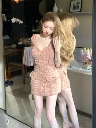 絶妙な色合いがかわいい♡くすみピンクツイードキャミワンピースは、女性らしい上品さを演出してくれるアイテムです。ツイード素材のキャミワンピースは、上品な雰囲気を醸し出し、絶妙な色合いのくすみピンクが可愛らしい印象を与えます。シンプルなデザインながらも、魅力的なアクセントを加えています。