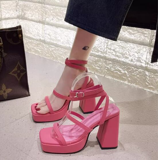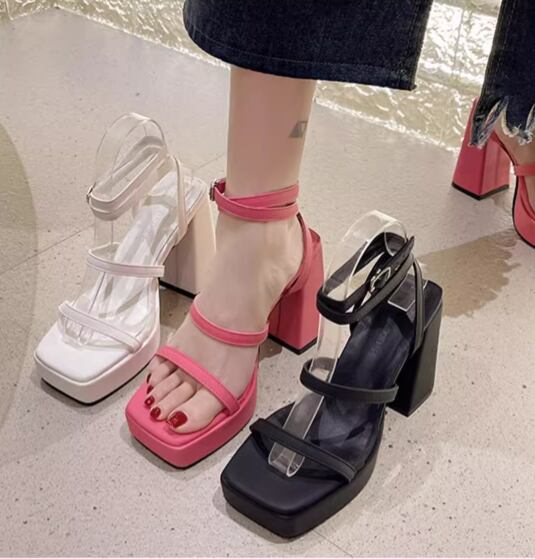 3color 太めのヒールとアンクルストラップで安定感◎11㎝ヒールサンダル