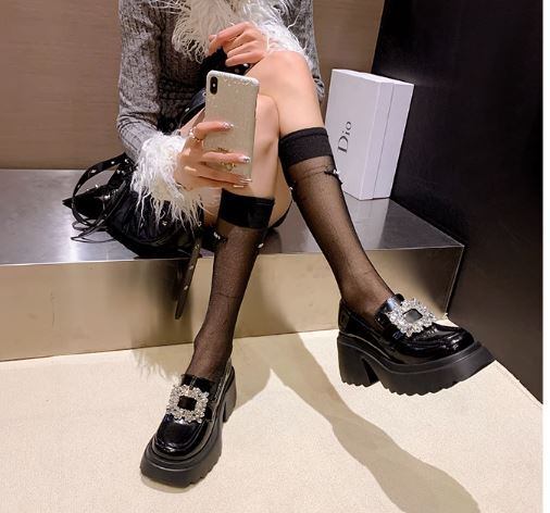2color ビジュー付き 8㎝ヒール 厚底ローファー