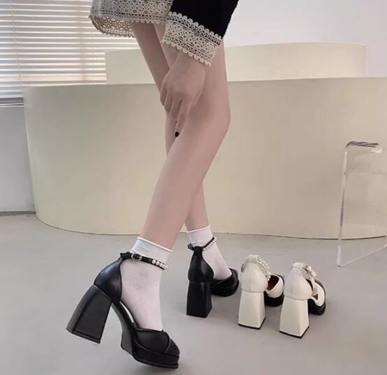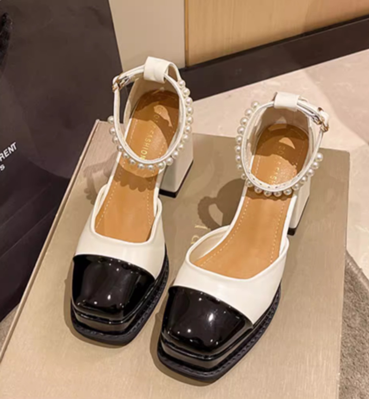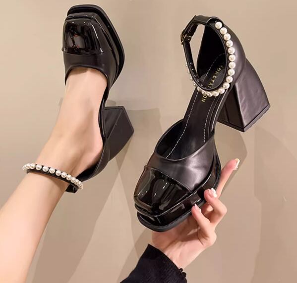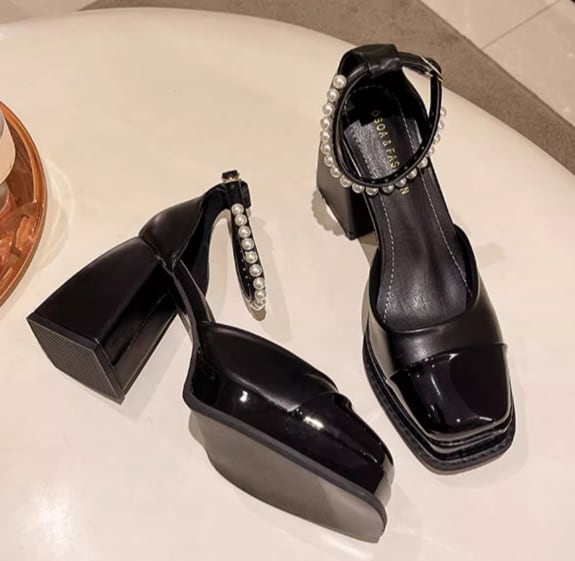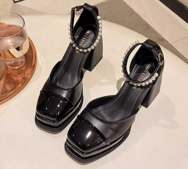 上品で可愛らしいパールストラップが特徴の、9㎝ヒールのフレンチガーリーパンプスです。