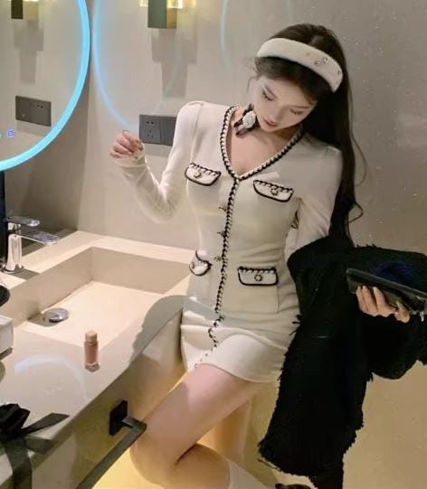 ぴったりとしたシルエットが女性らしさを引き立て、華奢なボディーラインを強調します。リボンは胸元のアクセントとなり、可愛らしさを一層引き立てます。