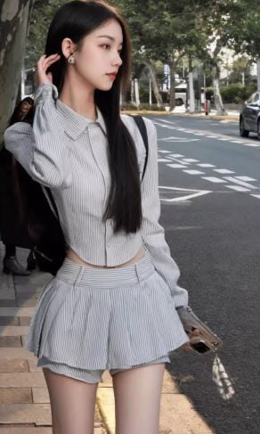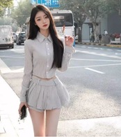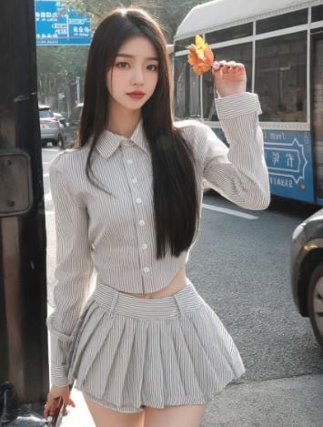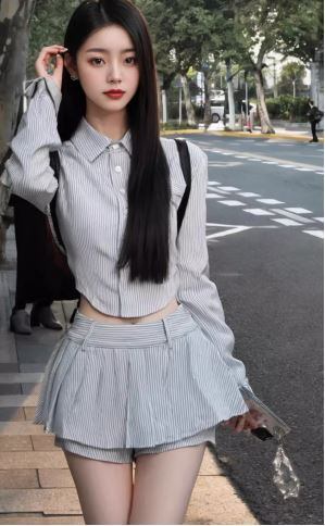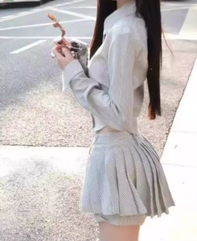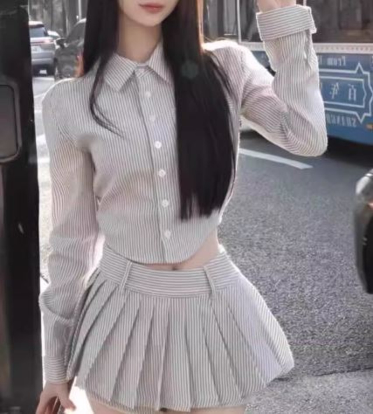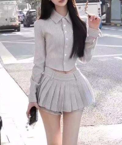 おしゃれなストライプシャツと可愛らしいプリーツキュロットスカートがセットになった大人気アイテムが登場しました!
