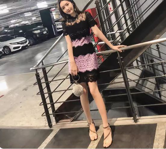 エレガントで華やかな一枚、「パープル×ブラック♡エレガント半袖レースワンピース」が登場しました!