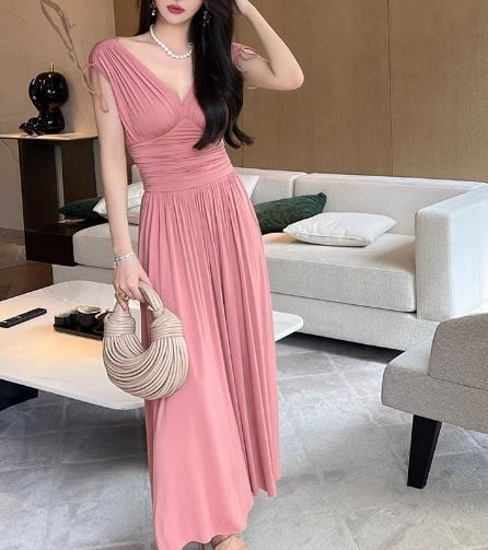 ざっくりと開いた胸元がセクシーで女性らしい、ショルダーリボンロングワンピースが登場しました!