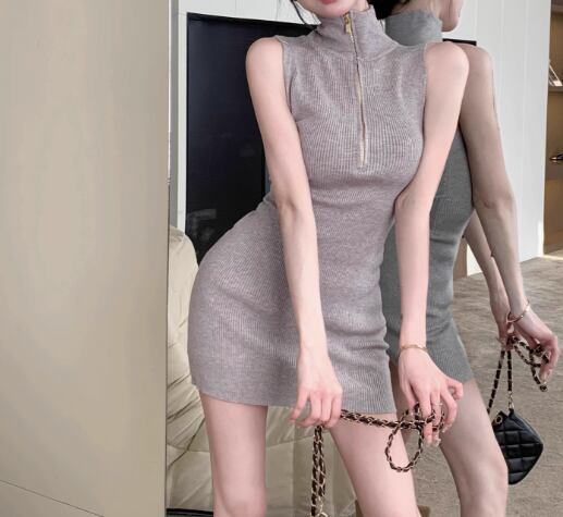 2つの着こなし方が楽しめるハイネックノースリーブニットワンピース。