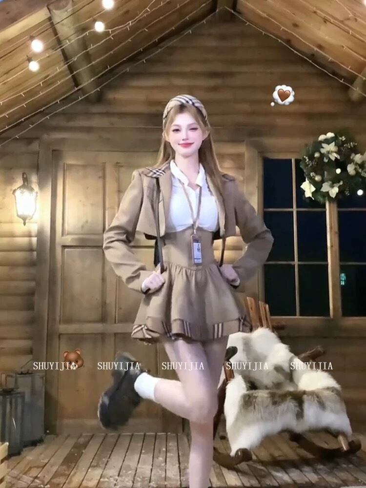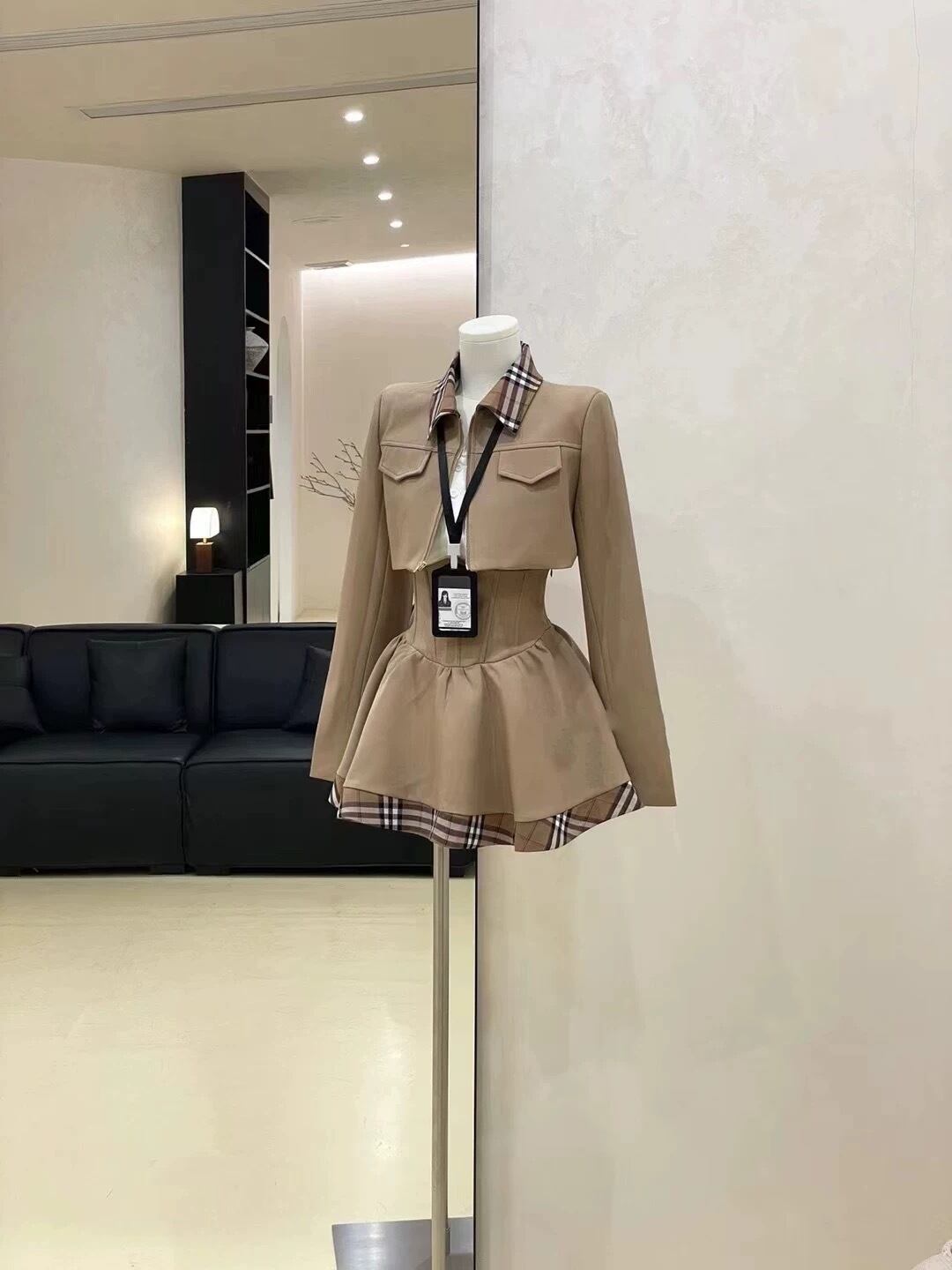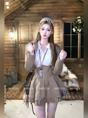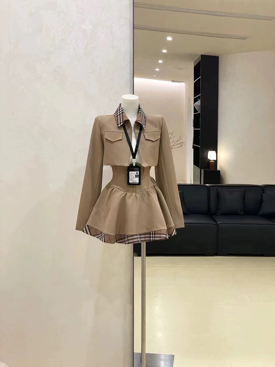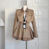 このカレッジ風 チェック柄ミックスジャケットとハイウエストミニスカのセットは、トレンドのチェック柄を取り入れたデザインが魅力です。