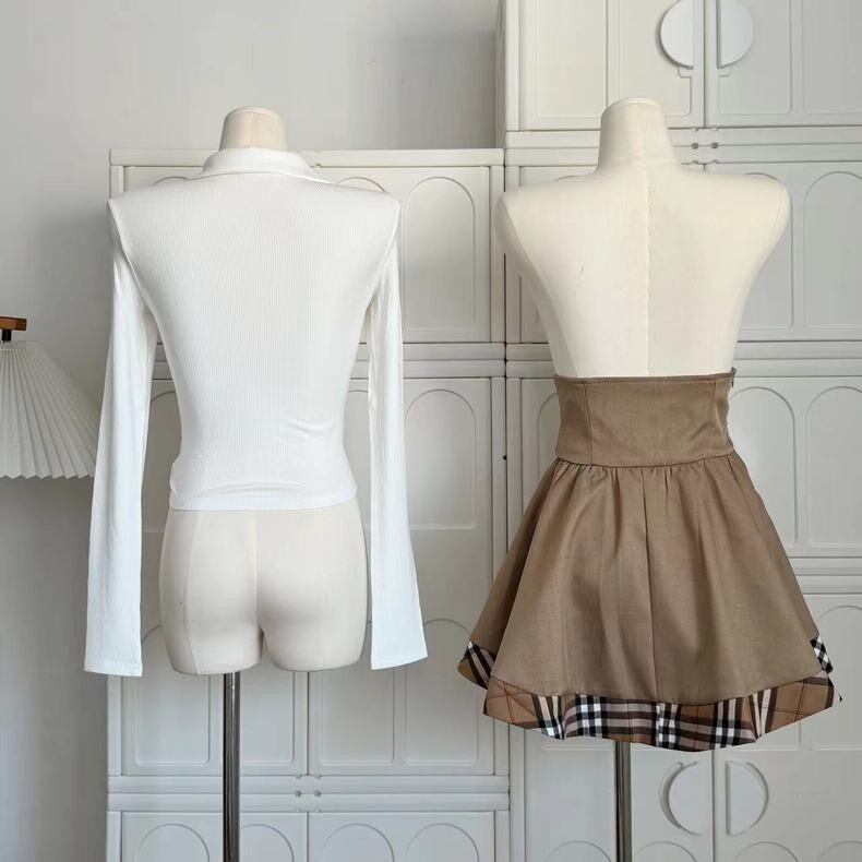ハイウエストのミニスカは、ウエストを引き締めてスタイルを良く見せるのがポイント。