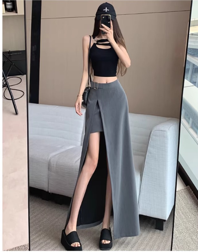 2color セクシーに美脚見せ♡ハイウエストロングスリットスカート